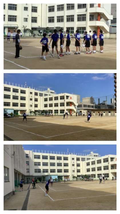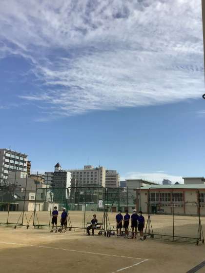 スポーツの秋。秋晴れとなった日曜日。ソフトテニス部が大阪市新人大会に出場しています。