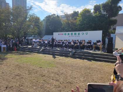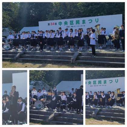 本日は、難波宮で中央区民まつりが3年ぶりに行われ、東中吹奏楽部の演奏が行われました。