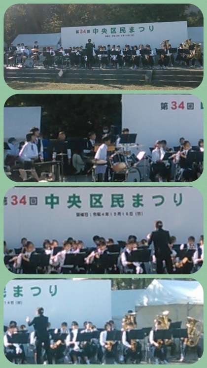 本日は、難波宮で中央区民まつりが3年ぶりに行われ、東中吹奏楽部の演奏が行われました。