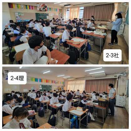 さて、本日の授業のようすです。職員室では、合唱コンクールの練習の歌声が響いてきます。