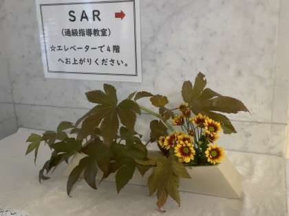 玄関ホールに、新しいお草花を生けていただきました。「収穫の頃」のお題で「小菊・紅葉・木いちご」が玄関で来校者を迎えています。いつもありがとうございます。