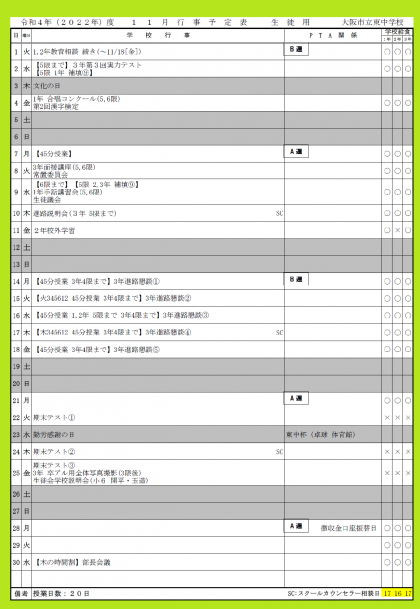 東中百景〜11月の行事予定表を掲載します〜