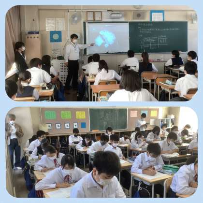 公開授業週間も終盤です。今日は、現場実習中の大学院生による公開授業です。大学院から教授先生にもお越しいただき、授業における「探究」について、授業後にあらためてご指導いただきました。生徒たちが「主体的で対話的で深い学び」となるよう、「探究」の視点も取り入れて、授業づくりに努めています。