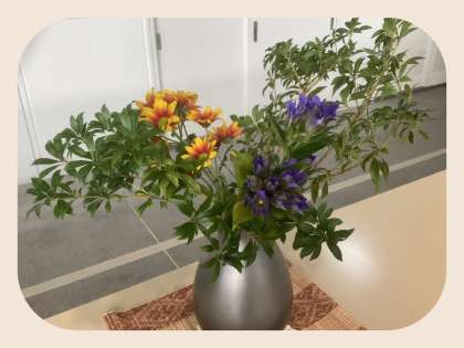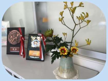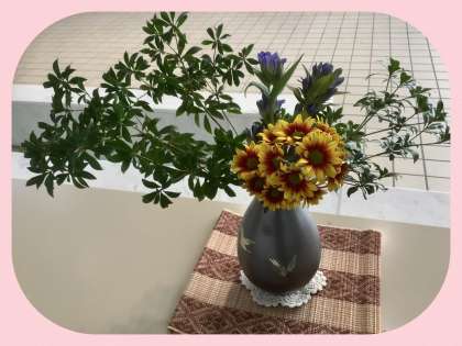 玄関ホールと職員室前のお花を生け替えていただきました。いつもありがとうございます。玄関ホールには、「あせび・菊・りんどう」が、職員室前には「カンガルーポー・菊」が、行き交う人の心に、潤いを与えてくれます。