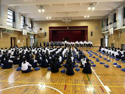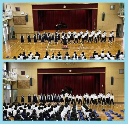 1年生の合唱コンクール本番は11月4日の午後です。今日は、当日の動きの確認も含めて、本番さながらにリハーサルを行いました。どのクラスも練習の成果を存分に発揮しましょう。