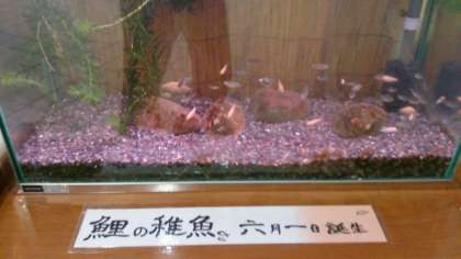 6月1日に誕生した鯉の稚魚が、日に日に成長を続けています。この水槽のサイズでは、もうすぐ限界になりそうです。