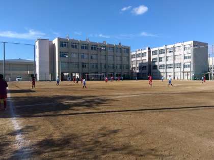 加賀屋中学校との対戦では、開始早々先制するものの攻め込まれる時間が続きます。