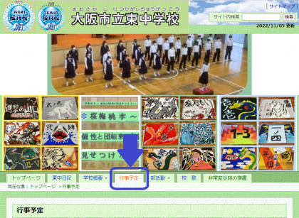 今月の行事は、画面上部の「行事予定」のタグをクリックするとご覧いただけます。