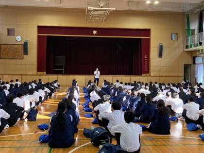 保健体育科ので3組の担任である上枝先生から、学生時代の経験から、"継続すること"と、"前向きであること"の大切さについて講話がありました。