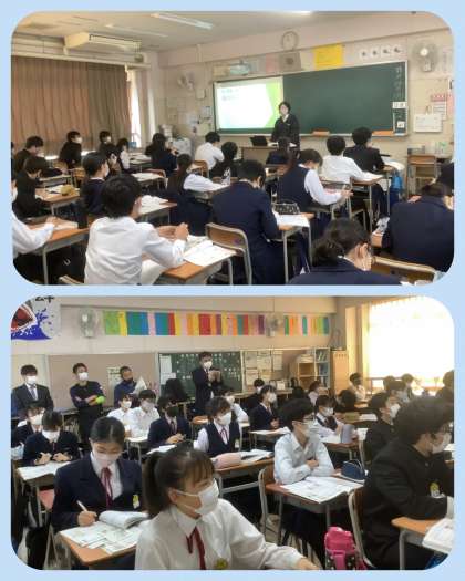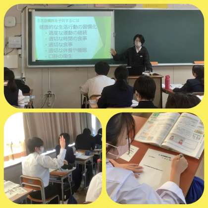 大学院から現場実習中の院生による公開授業がありました。大学院から先生をお招きしての授業に、院生は朝から緊張気味でしたが、落ち着いて授業を進めていました。授業は、「生活習慣病を自分の事として捉え予防について考える」ことをめあてとしました。大人になってから生活習慣病を予防するのではなく、中学生時代から自分の体を守るための日々の行動を大切にしましょう!