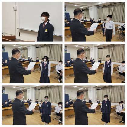 本日は、Teamsによる全校集会を行いました。大阪市総合文化祭への出品作品の表彰伝達の後、各委員会から委員長さんが今月の目標を発表してくれました。