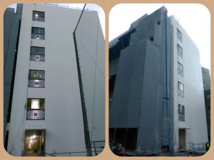 新校舎を覆っていたシートが外され、校舎の北側の1面が現れました。完成が待ち遠しいところです。