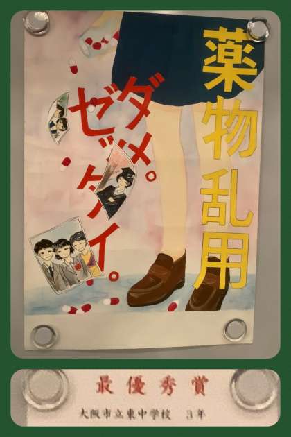 薬物乱用防止啓発ポスターの最優秀賞に3年生の作品が選ばれました。おめでとうございます!このポスターは、600枚ほど印刷され、府内警察署、交番、学校等に1年間、掲出されます。