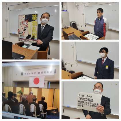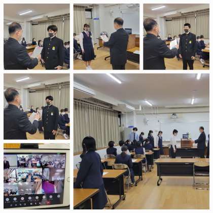 本日はTeamsによる全校集会を行いました。大阪市総合文化祭への出品作品とバスケ部の表彰伝達のあと、税の作文で全国6位である国税庁長官賞に入選した生徒の表彰式での発表をオンライン配信しました。46万点の応募の中からの入賞という快挙とのことでした。おめでとうございます。