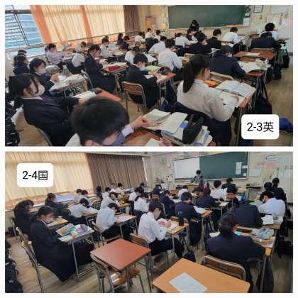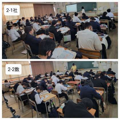 本日は、昨日の雨も上がり比較的寒さの穏やかな日となりました。本日の授業は、明日からの期末テストのために対策プリントを行っているところもありました。皆さん、明日から3日間、日頃の成果を発揮できるように頑張ってください。