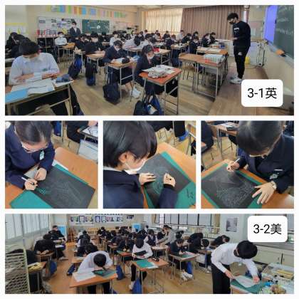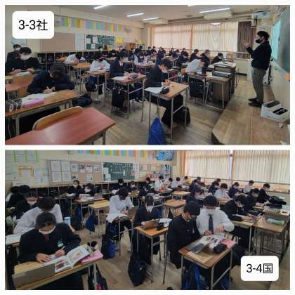 本日は、昨日の雨も上がり比較的寒さの穏やかな日となりました。本日の授業は、明日からの期末テストのために対策プリントを行っているところもありました。皆さん、明日から3日間、日頃の成果を発揮できるように頑張ってください。