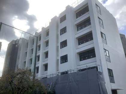 新校舎が姿を現し、工事現場の方に無理をお願いして、特別に案内していただきました。ありがとうございました。素晴らしい校舎です。完成がますます待ち遠しいです。