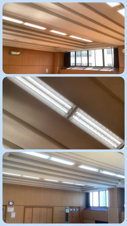 格技室の照明もLEDに変更しました。写真では、わかりにくいかもしれませんが、日没後に格技室に入ると眩しいぐらいで、廊下が暗く感じます。東中学校では、新しい校舎の建築とともに、既存の校舎においても、生徒たちの教育環境を少しずつ改善し、生徒たちがより安心して過ごせる、より安全な学校になるよう努めています。