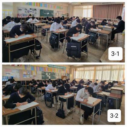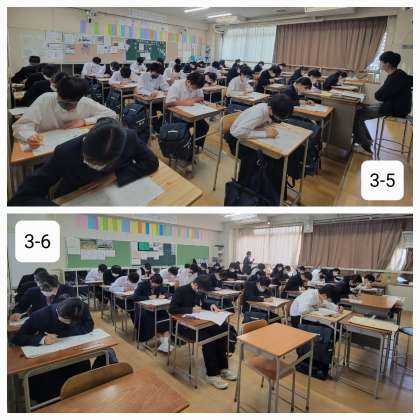 本日は、期末テスト2日目でした。皆さん、真剣な表情で頑張っていました。