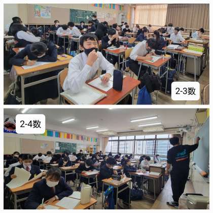 本日は朝から雨が降り、3時くらいには激しく降りました。今晩から気温がかなり下がるそうなので、体調管理にはくれぐれもご注意ください。さて、本日の授業のようすです。テストが返ってきていると思います。できなかった箇所の復習をしっかりやりましょう。