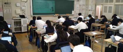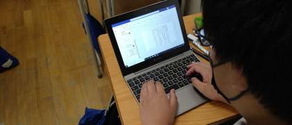 「複数の情報を関連付けて考えをまとめる」を目標に、タブレット上で作文をしています。