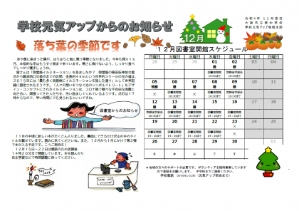 12月 学校元気アップからのお知らせ 〜訂正のお知らせ〜