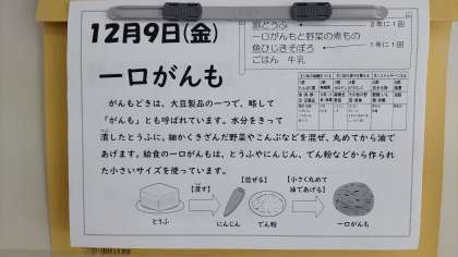 がんもは「がんもどき」の略で、関西では「ひろうす」とか「ひりょうず」という名前で呼ばれたりします。皆さんはどちらの呼び名を聞くことが多いでしょう?小さいころ、うちでは「ひろうす」と呼んで、ひじきと一緒に炊いて食べることが多かったです。「ひろうす」はげんこつくらいの大きさで、中に銀杏が入っていたのを覚えています。皆さんのおうちではどんな風にして食べることが多かったでしょう?