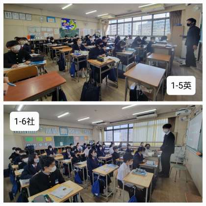 さて、本日の授業のようすです。エアコンを付け、窓とドアを対角線に開けて換気を行いながら授業を行っています。