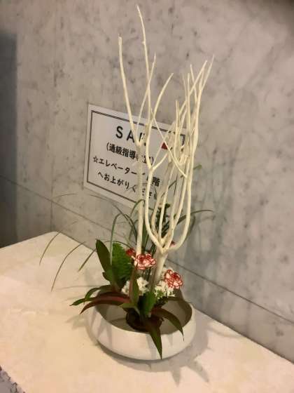 玄関の花を生け替えていただきました。お題は「白の戯(たわむ)れ」、「三又(ミツマタ)、カーネーション、小菊、ミソカンサス、ドラセナ」を生けていただきました。いつも東中学校のためにありがとうございます。雨降りの朝を迎えましたが、生徒の皆さんは、足元に気をつけて、時間に余裕を持って登校しましょう。