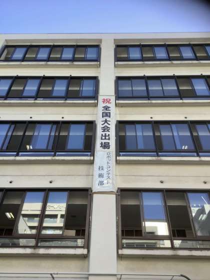 玄関には、技術部の全国大会を祝して、懸垂幕が掲げられました。あらためて全国大会出場おめでとうございます。東中学校の代表として、そして、大阪市・近畿の代表として活躍することを期待しています。