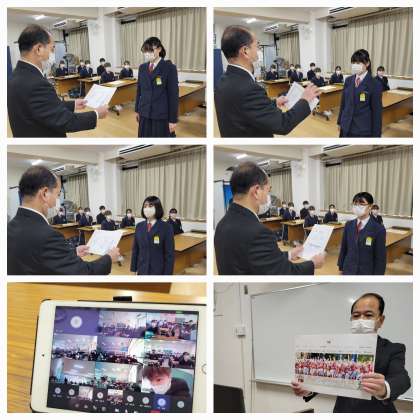本日もオンラインによる全校集会を行いました。税についての作文、部活動の表彰伝達のあと、各委員会からの目標の発表がありました。
