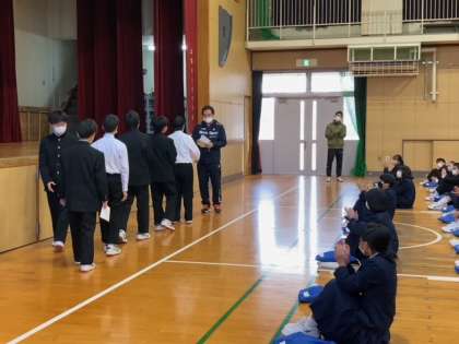 先生方からは、学習面、健康面、生活面への注意がありました。与えられた宿題をしっかりやりながら、体の健康、心の健康を保ち、ルールやマナーを守る冬休みにしてください。
