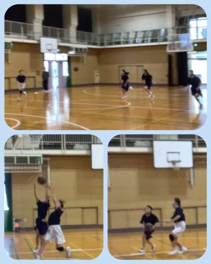 体育館では、全面を使って、女子バスケットボール部が練習しています。少人数での活動ですが、顧問の先生の言葉をしっかりと聞き、一人ひとりが考えてプレーすることを実践しています。随分とシュートも入るようになりました。