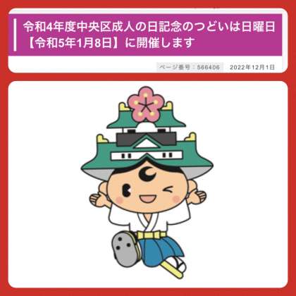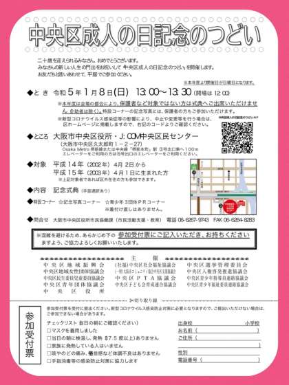 20歳を迎えられるみなさま おめでとうございます〜「中央区成人の日記念のつどい」について〜