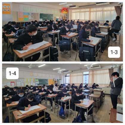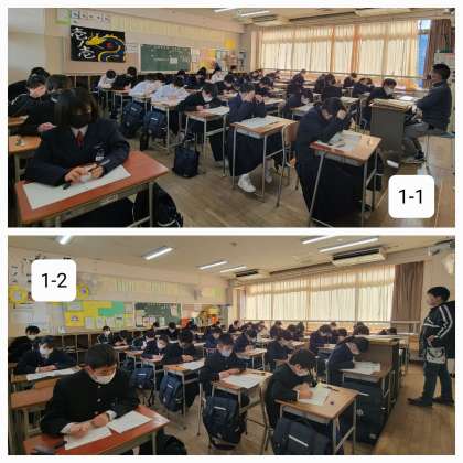 本日、1,2年生はチャレンジテストでした。皆さん、冬休みがあけてすぐのテストにもかかわらず、真剣な表情で受けています。休み期間の成果を十分に発揮して頑張ってください。