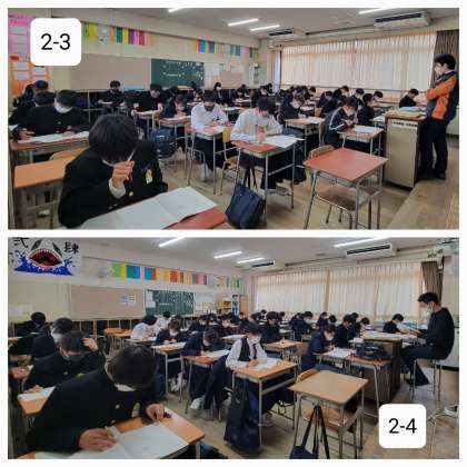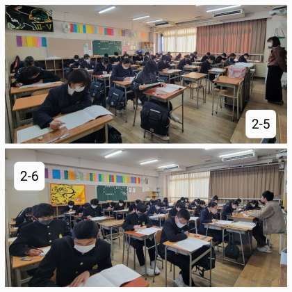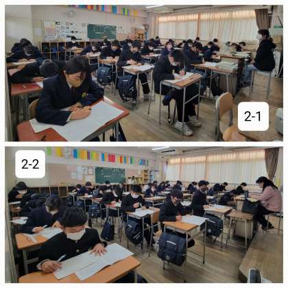 本日、1,2年生はチャレンジテストでした。皆さん、冬休みがあけてすぐのテストにもかかわらず、真剣な表情で受けています。休み期間の成果を十分に発揮して頑張ってください。