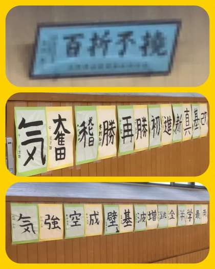 剣道部の皆さん、額にある前校長先生の書「百折不撓」の精神で稽古を重ねていきましょう!