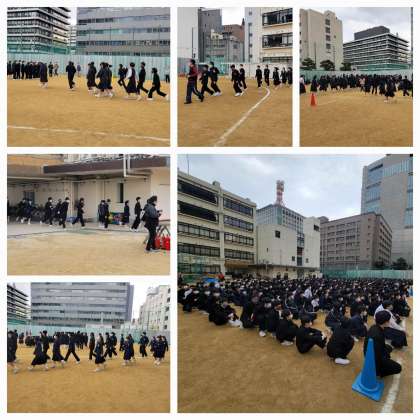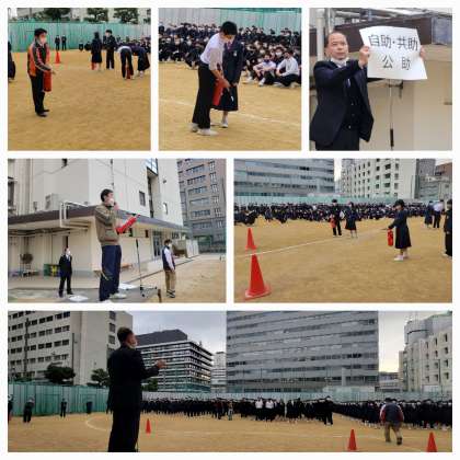 技術室から火災が発生したことを想定して行いました。どのクラスもふざけたり私語をすることなく機敏に行動することができていました。