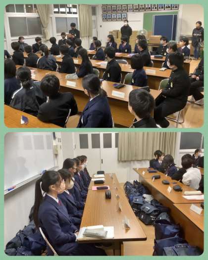 1月の生徒議会が行われました。3年生と共に開催できるのも2月を残すのみになりました。1・2年生の皆さんは、3年生から学んだことや教えてもらったことを新入生に伝えていきましょう。「恩返し」は「恩送り」で。今日の生徒議会で共有したことを明日からの学校生活に繋げていきましょう!