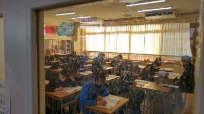 今日は土曜日。いつもは部活動の声がよく聞こえてくるのですが、今日は静か。それというのも英語検定に挑戦している生徒がいるからです。