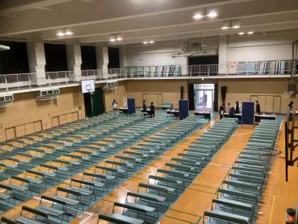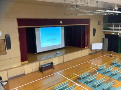 新入生保護者説明会の準備が整いました。開始は14時からです。換気のため、扉等を少し開けて実施いたします。足元を暖かくしてお越しください。また、健康観察表を受付でご提出ください。