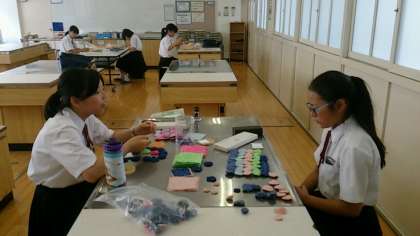 家庭科部では、秋の大阪市立中学校総合文化祭への出展に向けた作品づくりに取り組んでいます。