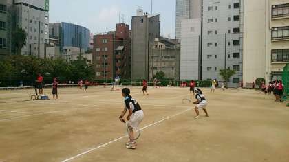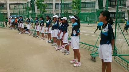 ソフトテニス部の顧問の皆さんのご努力により、本日は東中を会場に市内の中学校から9チームが参加して「なにわCUP」が行われています。