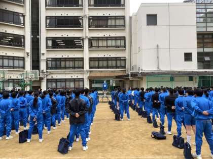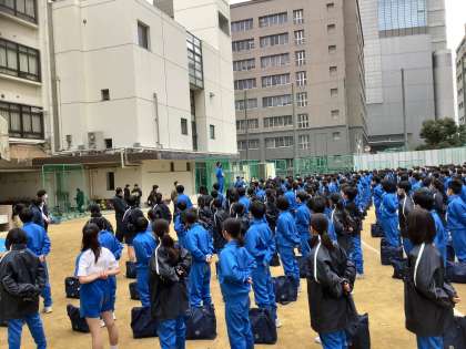 3年ぶりの大阪城マラソンです。開会式・準備体操を体育委員が進めています。