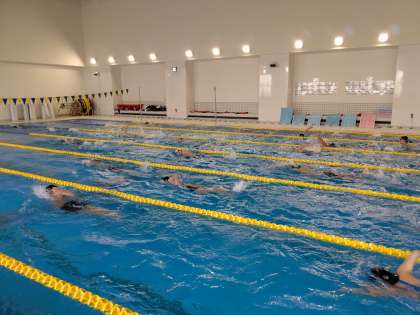 本日は関大北陽高校のプールをお借りして、東・港南・旭陽の3校で合同練習をしています。寒さに負けずがんばっています。