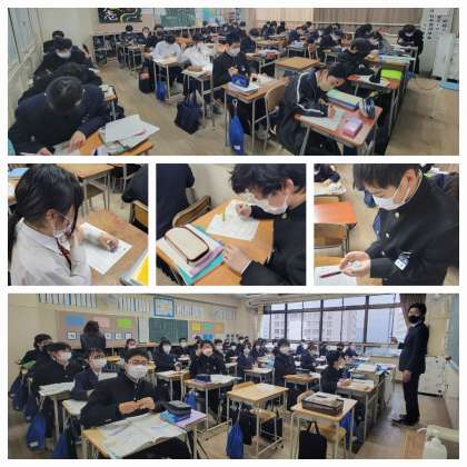 2月10日、11日は3年生が大阪の私学入試です。筆記、実技、面接など日頃から頑張ってきた成果は発揮できましたか?1年生の皆さんも2年後ですね。まだまだ先の話ではなく、自分自身の進路に向けてしっかり考えて行きましょう。