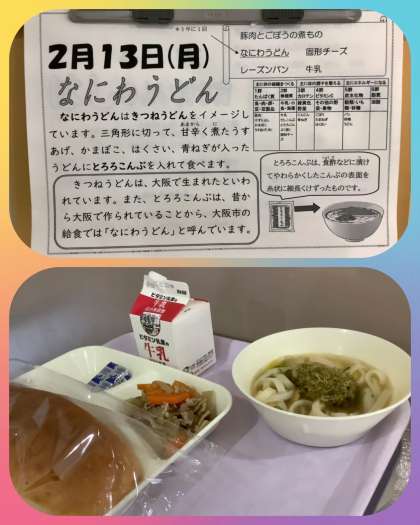 「きつねうどん」は、大阪で生まれたと言われています。また、とろろ昆布は、昔から大阪で作られていることから、大阪市の給食では「なにわうどん」と呼んでいます。