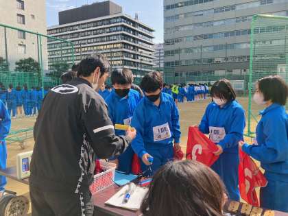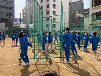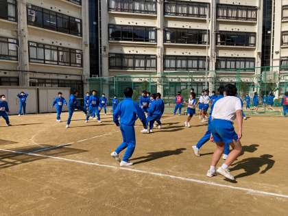 一人ひとりが主体的にコートの準備しています。試合が始まりました!
