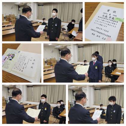 本日はオンラインでの全校集会を行いました。造形展と「つなげよう命のつながり」のエッセイ作品入賞の表彰伝達のあと、校長先生からの講話がありました。