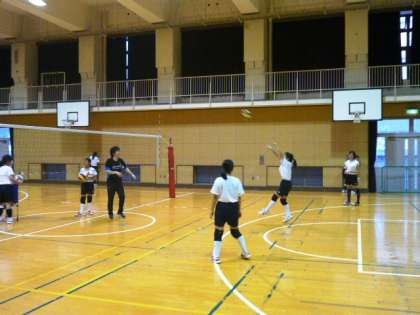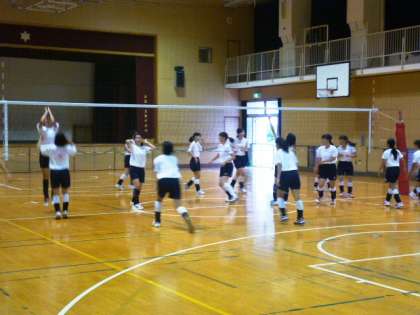 体育館では蒸し暑い中、バレーボール部が一生懸命練習をしていました。